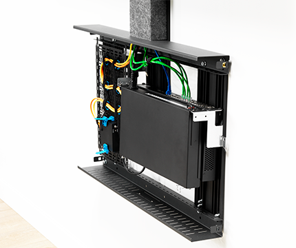 壁掛マウントに取り付けるタイプのストレージキャビネット 従来のCHIEF製品壁掛けマウントの横パイプを利用してスムーズに設置できるストレージキャビネット 小型機器をストレージボックス内に収納 ※図面データは暫くお待ちください。